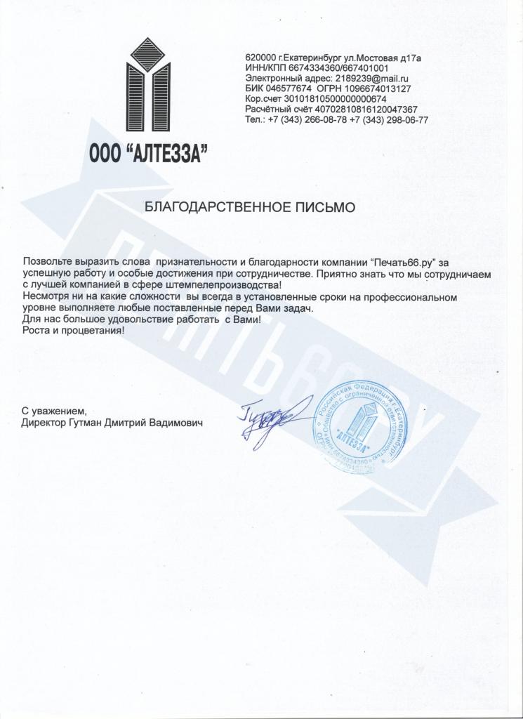 Благодарственные письма